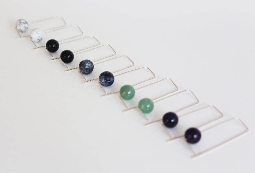 These earrings are intended to be tactile and in addition to the choice of gemstones with anxiety-soothing properties, the movement of the stones on the ear wire can be used as a self-soothing tool.